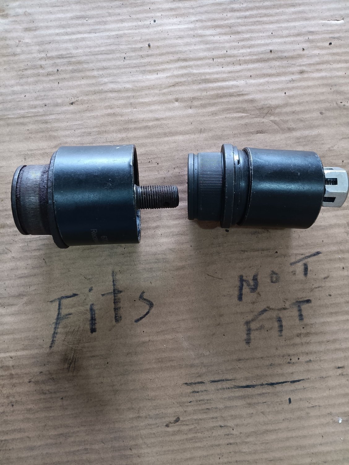 Got the old one out. Press did a nice job. However, the new lower ball joint does not want to press in. See photos. The old one had a nice lip for the press tool. The new one has almost no lip at all. Any suggestions? Can you press it by applying force to the threaded bolt end? Wrong ball joint? Help!!!!