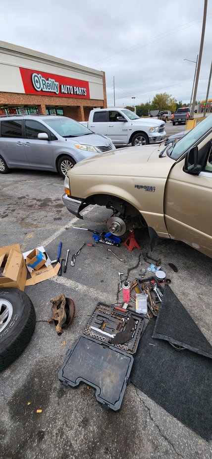 Ok ya'll, here's my sob story. I cannot find a knuckle for this dang truck! A couple threads on my spindle nut broke this morning and the wheel started wobbling so I limped to the parts store, bought a new rotor (because i couldn't get the wheel nut off,) wheel bearings and the wrong knuckle and I put all that on in the parking lot. Oreillys sells knuckles for front torsion bar rangers and rangers that have 11" rotors, which is what they sold me and i put it on my truck before they noticed it wasn't for my truck specifically. I had to get the matching upper control arm (because the ball joint was different) and put that on as well; now the tire is tilted out at the top and I got 1/3 of a brake pad hanging off the rotor. The guy helping me figure this out (not the guy that sold me the wrong part) used to be a mechanic (really nice and helpful man named brandon), he was confused about why they dont carry it for my specific ranger and actually found out they can't even source the knuckle I need, but, on the bright side, they do have every other steering knuckle known to man..... He ordered me a knuckle from a 2001 rwd ranger that has coils like mine and maybe that will fit. He also is giving me the correct control arm for free after i swap them out, since they got me the wrong thing and I spent 5 hours in the parking lot scratching my head, taking crap apart and putting it back together...
