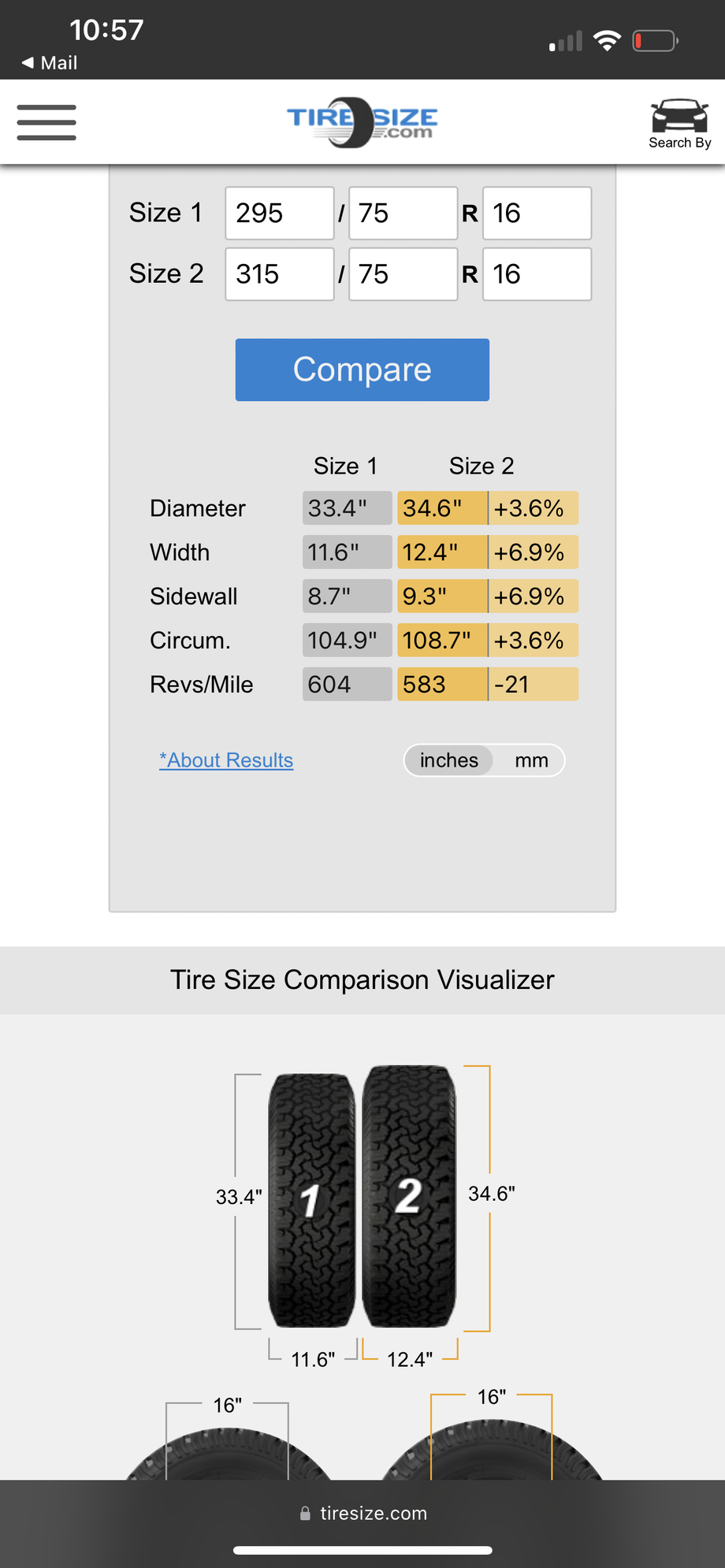 2) I work at a tire shop and this is a basic breakdown of how a tire size works… first number is the width of the tire in mm i.e. 295mm… second number is aspect ratio, so a 295/75 means your sidewall is 75% of 295mm (not doing that math right now) third obviously is rim diameter